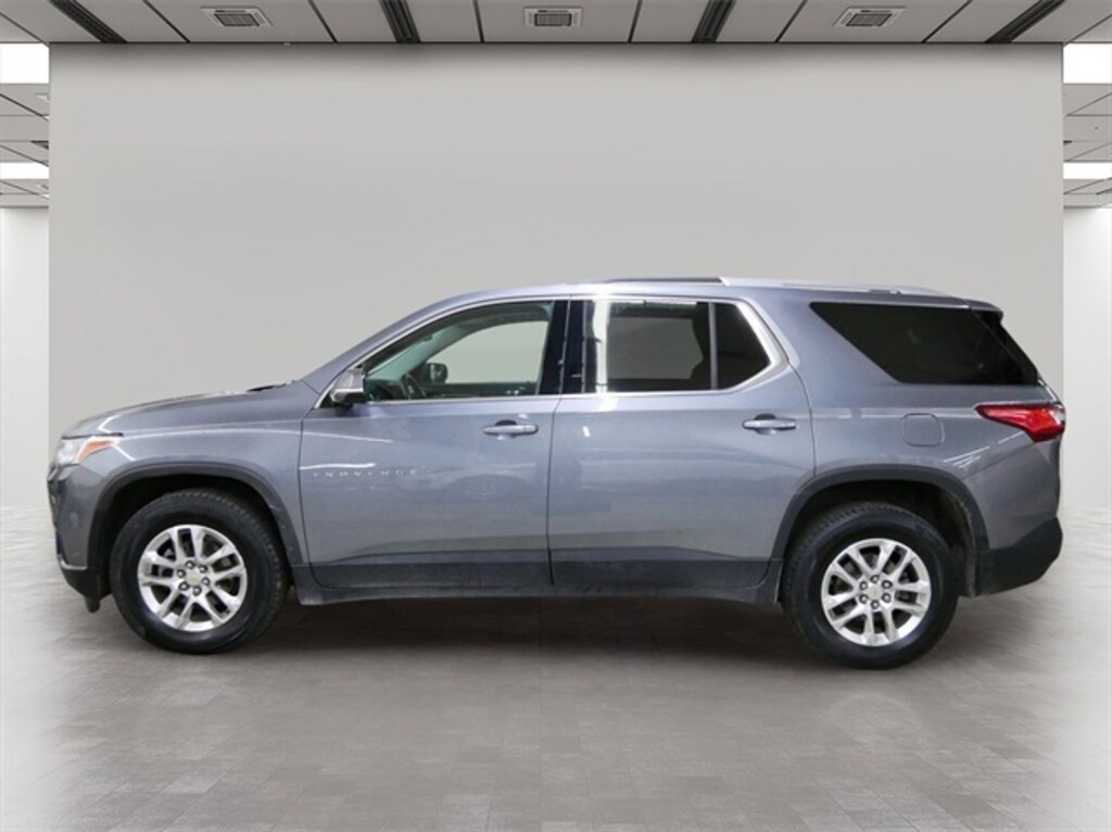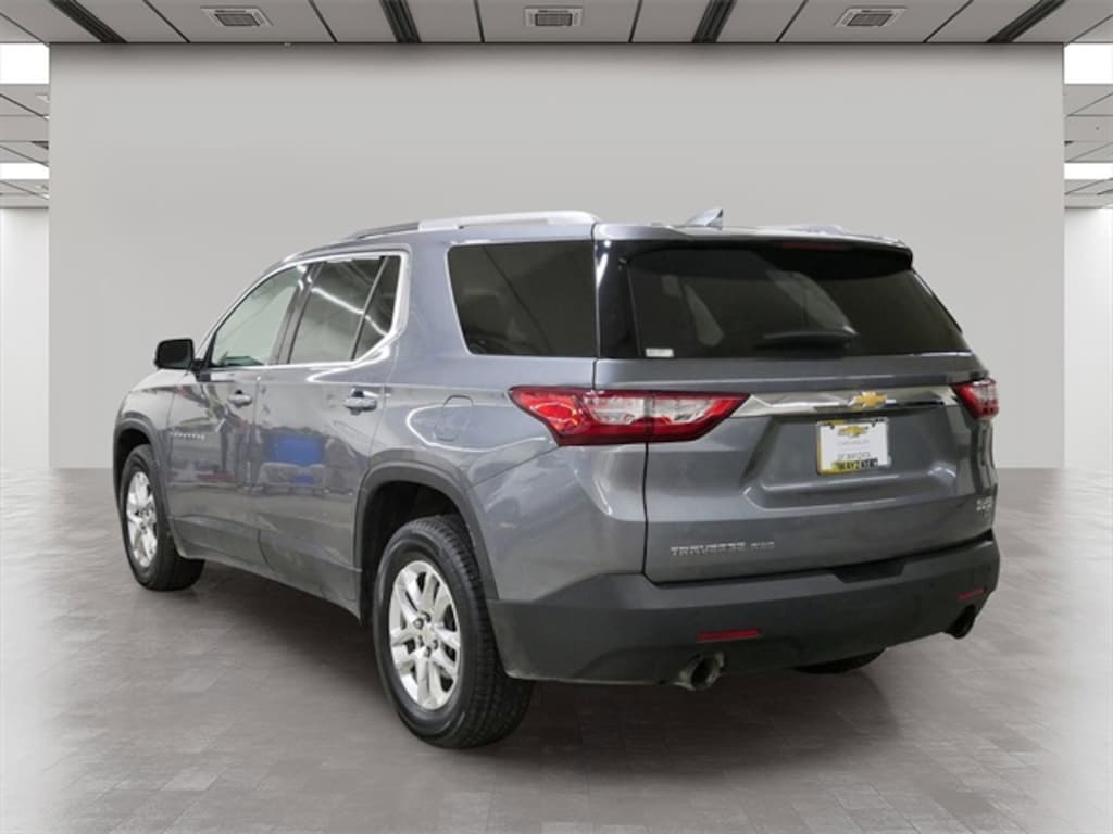 This Traverse is well equipped with Preferred Equipment Group 1LT, Trailering Equipment (Heavy-Duty Cooling System), Floor Liner Package (LPO) (1st & 2nd Row All-Weather Floor Liner (LPO) and 3rd Row All-Weather Floor Liner (LPO)), Front License Plate Bracket Mounting Package, AWD, 7-Passenger Seating (2-2-3 Seating Configuration), Apple CarPlay/Android Auto, Power Liftgate, 3.49 Axle Ratio, 3rd row seats: split-bench, 4-Wheel Disc Brakes, 6 Speakers, ABS brakes, Air Conditioning, Alloy wheels, AM/FM radio: SiriusXM, Automatic temperature control, Brake assist, Bumpers: body-color, Compass, Delay-off headlights, Driver door bin, Driver vanity mirror, Dual front impact airbags, Dual front side impact airbags, Electronic Stability Control, Emergency communication system: OnStar Guidance, Exterior Parking Camera Rear, Four wheel independent suspension, Front anti-roll bar, Front Bucket Seats, Front Center Armrest, Front dual zone A/C, Front fog lights, Front reading lights, Fully automatic headlights, Garage door transmitter, Heated door mirrors, Heated front seats, High-Intensity Discharge Headlights, Illuminated entry, Low tire pressure warning, Occupant sensing airbag, Outside temperature display, Overhead airbag, Overhead console, Panic alarm, Passenger door bin, Passenger vanity mirror, Power door mirrors, Power driver seat, Power steering, Power windows, Premium Cloth Seat Trim, Radio data system, Radio: Chevrolet MyLink AM/FM Stereo w/8" Screen, Rear air conditioning, Rear anti-roll bar, Rear reading lights, Rear window defroster, Rear window wiper, Remote keyless entry, Roof rack: rails only, Security system, SiriusXM Satellite Radio, Speed control, Speed-sensing steering, Spoiler, Steering wheel mounted audio controls, Tachometer, Telescoping steering wheel, Tilt steering wheel, Traction control, Trip computer, Turn signal indicator mirrors, Variably intermittent wipers, Voltmeter, and Wheels: 18" Bright Silver Machined Painted Alum.