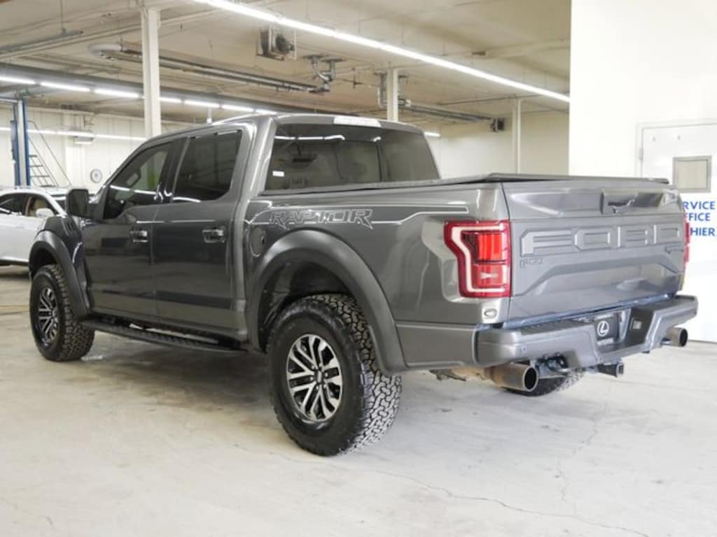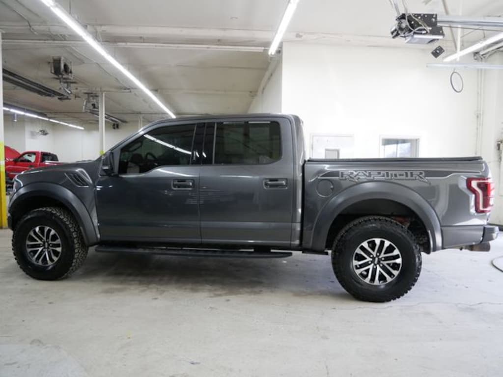 This F-150 is well equipped with Equipment Group 802A Luxury (10-Way Power Driver & Passenger Seats, 360 Degree Camera, 4.10 Front Axle w/Torsen Differential, 8" Productivity Screen, Advanced Security Pack, Ambient Lighting - Ice Blue Color Only, BLIS Blind Spot Information System, Dual-Zone Electronic Automatic Temperature Control, Heated Steering Wheel, Inflatable Rear Safety Belts, Integrated Trailer Brake Controller, Intelligent Access w/Push-Button Start, LED Box Lighting, LED Sideview Mirror Spotlights, Memory System (Seat, Pedal, Exterior Mirror), Power Glass Heated Sideview Mirrors, Power Tilt/Telescoping Steering Column w/Memory, Power-Adjustable Pedals, Power-Sliding Rear Window, Pro Trailer Backup Assist, Radio: B&O Sound System by Bang & Olufsen, Remote Start System w/Remote Tailgate Release, SYNC 3, Tailgate Applique FORD, Universal Garage Door Opener, and Voice-Activated Touchscreen Navigation), GVWR: 7,050 lbs Payload Package, Raptor Exterior Graphics Package, Raptor Technology Package (Adaptive Cruise Control w/Stop-and-Go, Lane Keeping System w/Alert & Assist, and Rain-Sensing Windshield Wipers), 4WD, 17" Cast Aluminum Wheels, 4-Wheel Disc Brakes, 7 Speakers, 8-Way Power Driver's Seat w/Power Lumbar, ABS brakes, Air Conditioning, Alloy wheels, AM/FM radio: SiriusXM, AppLink/Apple CarPlay and Android Auto, Auto High-beam Headlights, Auto-dimming Rear-View mirror, Brake assist, Compass, Delay-off headlights, Driver door bin, Driver vanity mirror, Dual front impact airbags, Dual front side impact airbags, Electronic Locking w/4.10 Axle Ratio, Electronic Stability Control, Emergency communication system: SYNC 3 911 Assist, Exterior Parking Camera Rear, Front anti-roll bar, Front Bucket Seats, Front Center Armrest, Front reading lights, Front wheel independent suspension, Fully automatic headlights, Heated Leather 40/Console/40 Front Seats, Illuminated entry, Leather steering wheel, Low tire pressure warning, Occupant sensing airbag, Outside temperature display, Overhead airbag, Overhead console, Panic alarm, Passenger door bin, Passenger vanity mirror, Power door mirrors, Power driver seat, Power steering, Power windows, Radio data system, Radio: SiriusXM w/7 Speakers, Rear Parking Sensors, Rear reading lights, Rear step bumper, Rear window defroster, Remote keyless entry, Security system, Speed control, Speed-sensing steering, Split folding rear seat, Steering wheel mounted audio controls, Tachometer, Tailgate Step w/Tailgate Lift Assist, Telescoping steering wheel, Tilt steering wheel, Tough Bed Spray-In Bedliner, Traction control, Trip computer, Twin Panel Moonroof, Unique Cloth Trim Seats, and Variably intermittent wipers.
