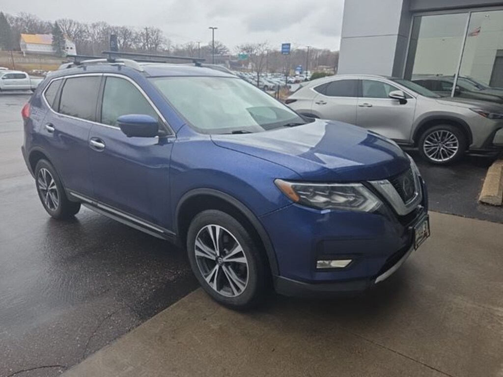 This Rogue is well equipped with SL Premium Package (LED Headlights and Power Panoramic Moonroof), AWD, 4-Wheel Disc Brakes, 9 Speakers, ABS brakes, Air Conditioning, Alloy wheels, AM/FM radio: SiriusXM, Anti-whiplash front head restraints, Auto High-beam Headlights, Auto-dimming Rear-View mirror, Automatic temperature control, Blind Spot Warning, Brake assist, Bumpers: body-color, CD player, Delay-off headlights, Driver door bin, Driver vanity mirror, Dual front impact airbags, Dual front side impact airbags, Electronic Stability Control, Four wheel independent suspension, Front anti-roll bar, Front Bucket Seats, Front Center Armrest w/Storage, Front dual zone A/C, Front fog lights, Front reading lights, Fully automatic headlights, Garage door transmitter: HomeLink, Heated door mirrors, Heated front seats, Heated steering wheel, Illuminated entry, Leather Appointed Seat Trim, Leather Shift Knob, Low tire pressure warning, Memory seat, Navigation System, Occupant sensing airbag, Outside temperature display, Overhead airbag, Overhead console, Panic alarm, Passenger door bin, Passenger vanity mirror, Power door mirrors, Power driver seat, Power Liftgate, Power steering, Power windows, Quick Comfort Heated Front Bucket Seats, Radio data system, Rear anti-roll bar, Rear seat center armrest, Rear window defroster, Rear window wiper, Remote keyless entry, Roof rack: rails only, Security system, Speed control, Speed-sensing steering, Split folding rear seat, Spoiler, Steering wheel mounted audio controls, Tachometer, Telescoping steering wheel, Tilt steering wheel, Traction control, Trip computer, Turn signal indicator mirrors, and Variably intermittent wipers.